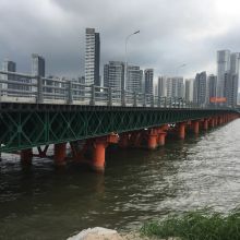 我們一般比較常見的貝雷片的材料通常為16Mn,每片架重270kg,其中“321”鋼橋用的貝雷片鋼橋類就是裝配式公路的鋼橋,這種裝配的公路鋼橋的最大特點是構(gòu)件非常的輕巧,在組裝和拆卸方面都十分的方便,所以,這類鋼橋可以用最簡單的工具和人力就能快速的建成,而且根據(jù)不同的公路特點和特殊情況而言,它的適應(yīng)性能也很強。它可以適用于汽車-10級、汽車-15級、汽車-20級、履帶-50級以及掛車-80級等等這5種載荷,可謂適用性方面也非常的廣泛,可以完成在橋梁施工中起吊移運預(yù)制構(gòu)件等現(xiàn)場施工作業(yè)。